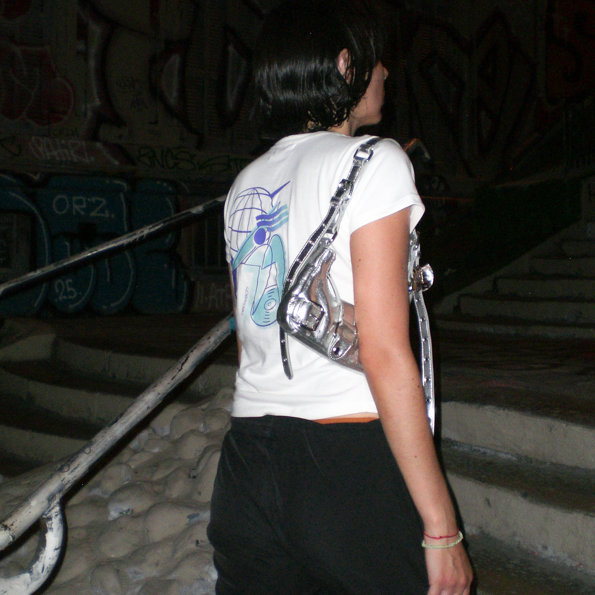 It has a small Neowach print on the front and a big print on the back, which was illustrated by Neowach’s friend and talented artist, @estebanemilio. It can be worn for a party, an afterparty, to go to the park, or any other urban activities.